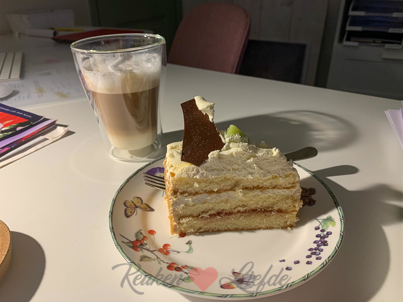 Hiep Hiep Hoera voor mezelf! Ik ben jarig vandaag. 🙂 Ik had geen tijd om iets te bakken dus haal ik een slagroomtaartje bij de supermarkt. Zonder taart geen verjaardag! Met een kop cappuccino en een punt slagroomgebak ga ik aan het werk.