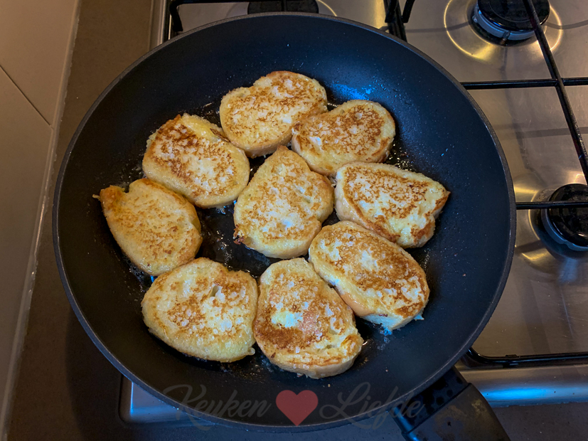 Er is nog veel stokbrood over van gisteren dus bak ik wentelteefjes voor het ontbijt.