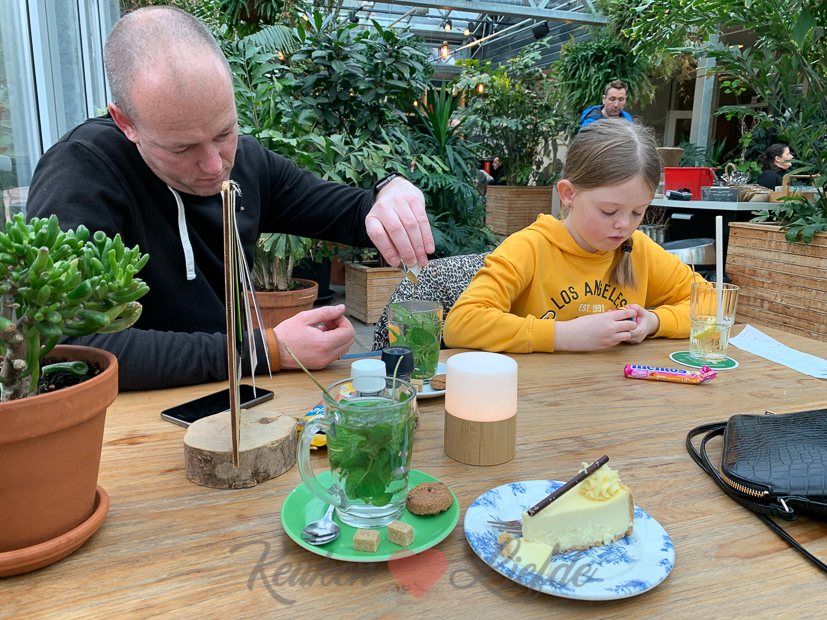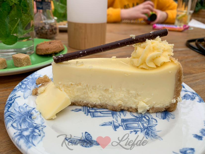 We sluiten ons weekendje Landal af in de plaza met een drankje en (voor mij) een stukje (hele lekkere!) cheesecake.