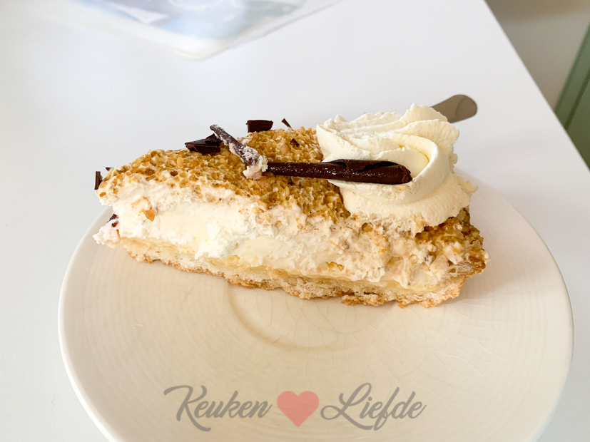 Ontbijten met taart, dat doe ik graag. Dit was een taartje van de supermarkt die nog over was na Johan zijn verjaardag. Ging er prima in. ?