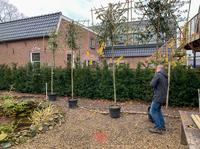 Johan is vrij vandaag want er worden leibomen thuisbezorgd die geplant moeten worden.