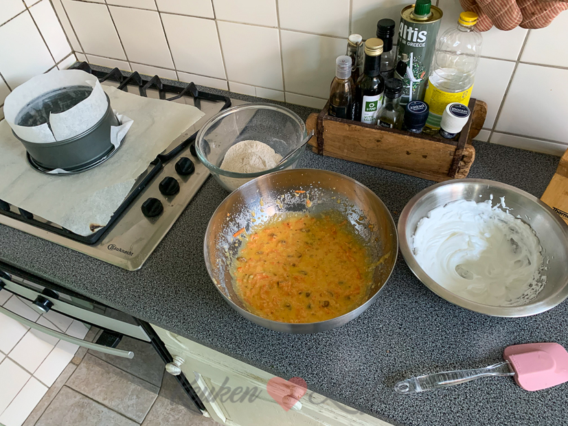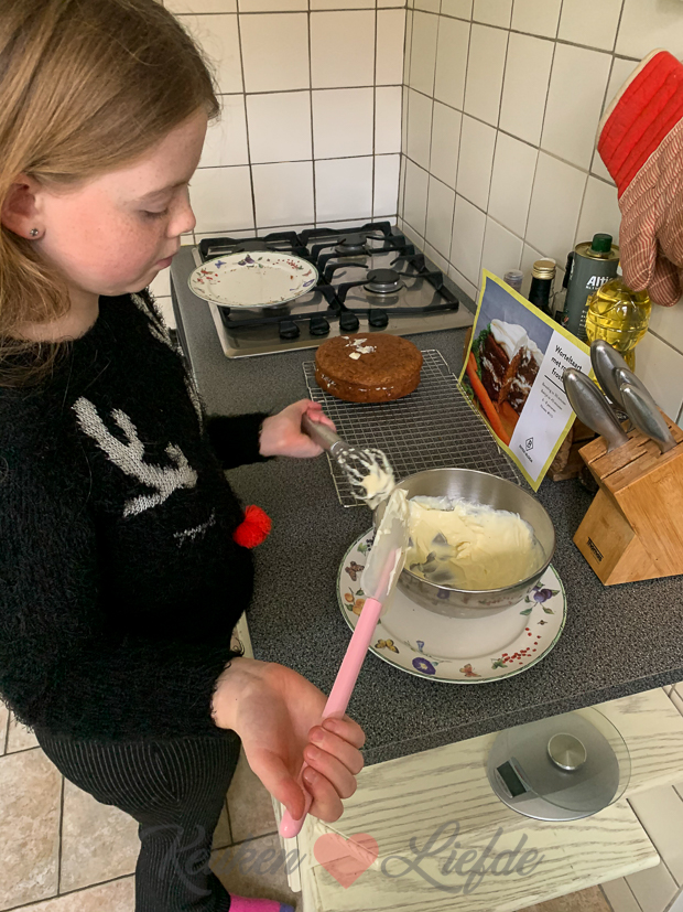 Zondag bakdag. (Eigenlijk is elke dag hier bakdag.) De kleine chef staat weer in de keuken om een carrot cake te maken met de bakbox die we vorige week kregen thuisgestuurd van Boter & Bloem. Hoewel de bereiding op de kaart die erbij zat soms niet helemaal duidelijk was, zag het uiteindelijke resultaat er goed uit! De smaak vonden we tegenvallen. De cake is heel vast en een beetje taai. Wat ons betreft geen succes helaas.