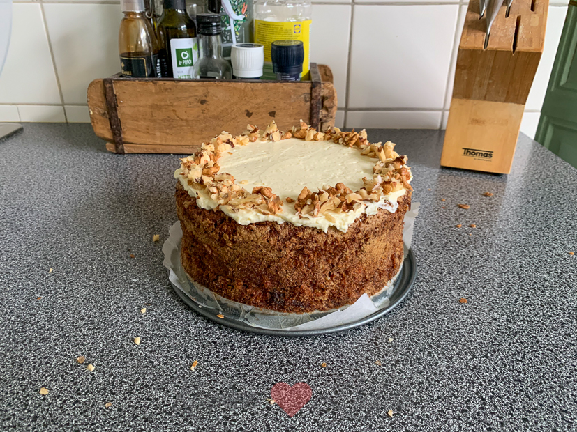 Ik sta in de keuken om carrot cake te maken (dit recept, onze favoriet!). Morgen word ik veertig (?) en daar hoort natuurlijk een taartje bij.