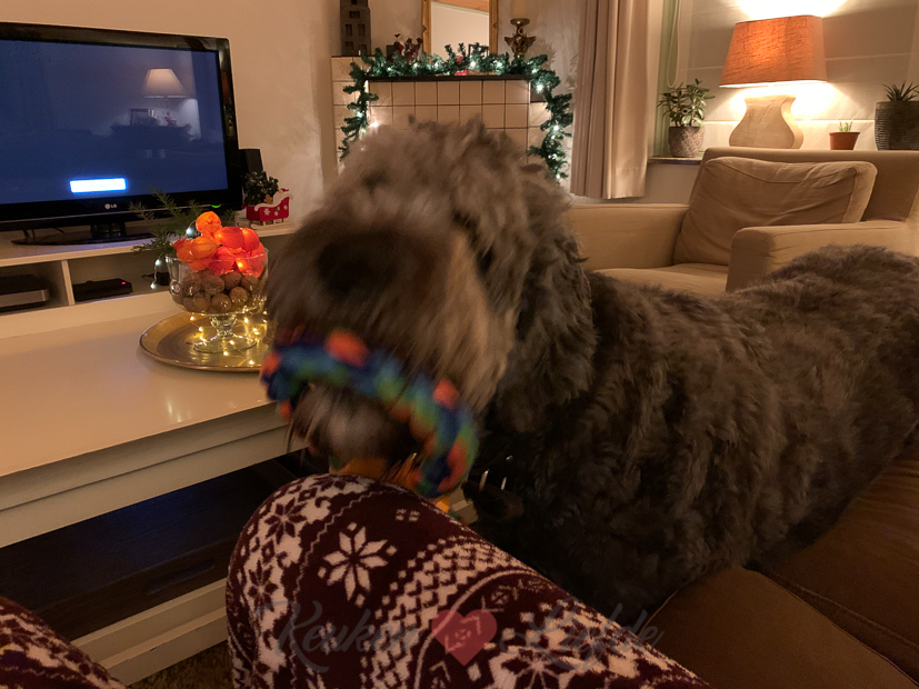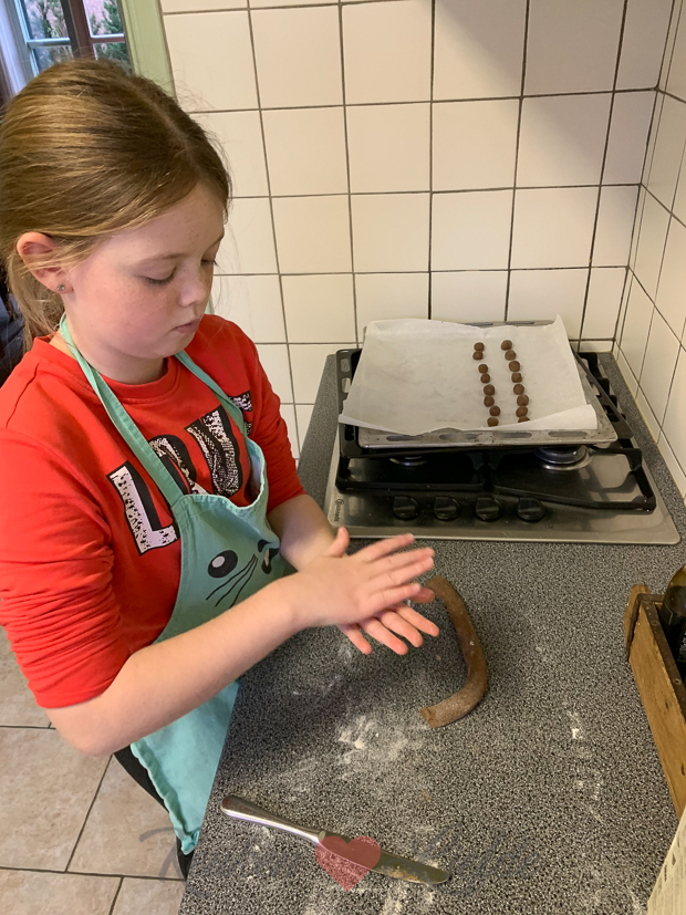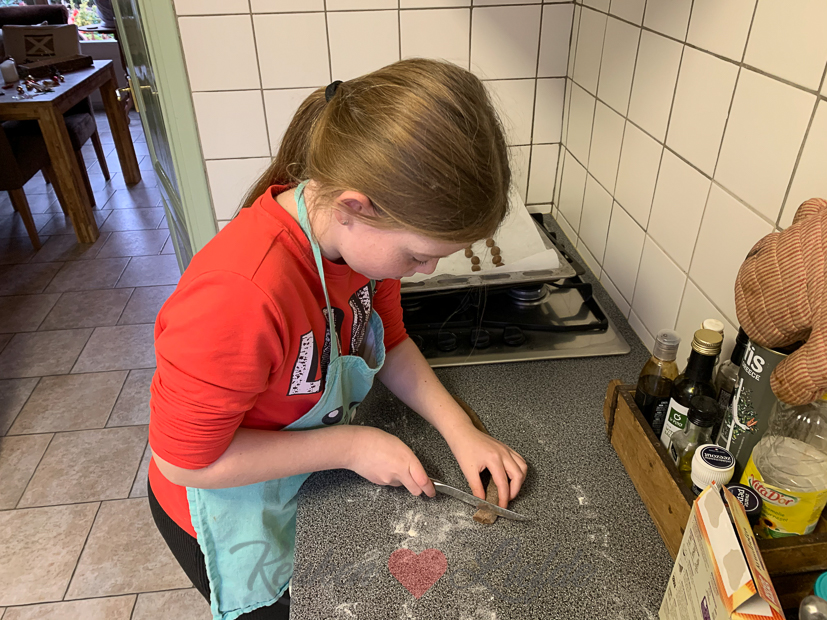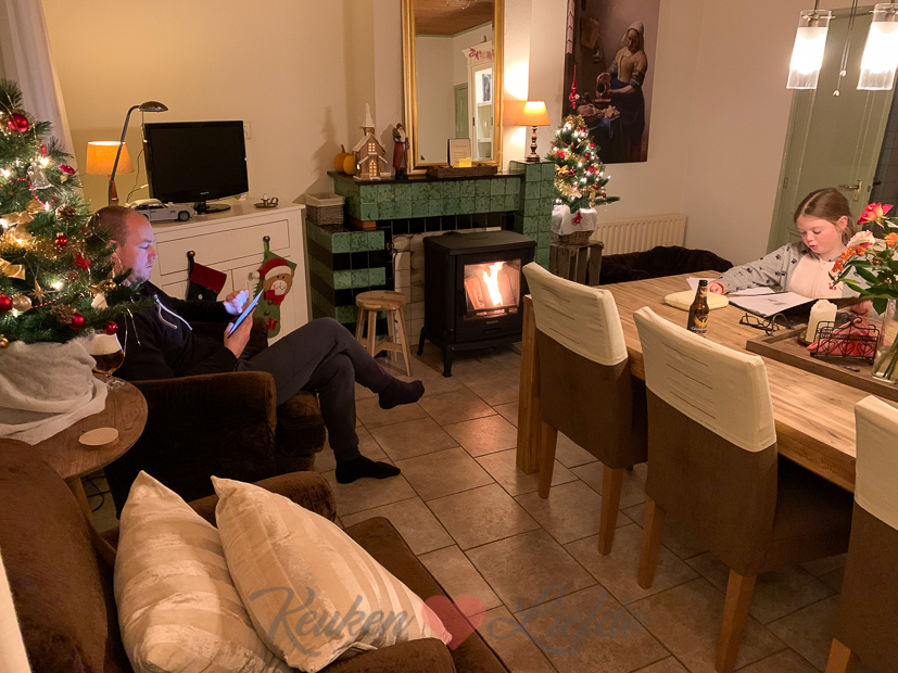 Zoals ik al zei gaan Sinterklaas en de Kerstman hier dit jaar samen door een deur. Terwijl op de achtergrond zachtjes een kerstdeuntje klinkt, staat de kleine chef in de keuken kruidnoten te draaien.