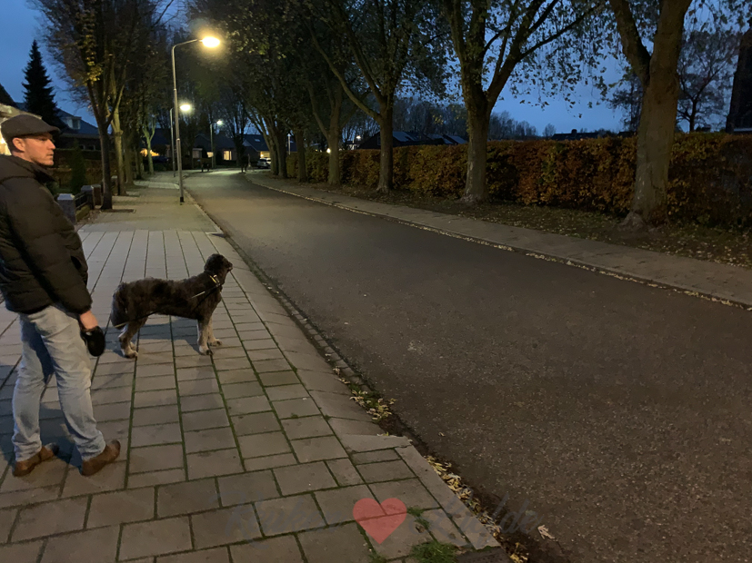 Als we thuiskomen doen we een rondje dorp met onze harige vriend.