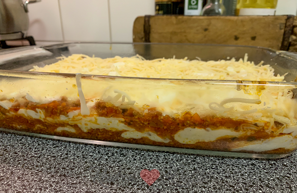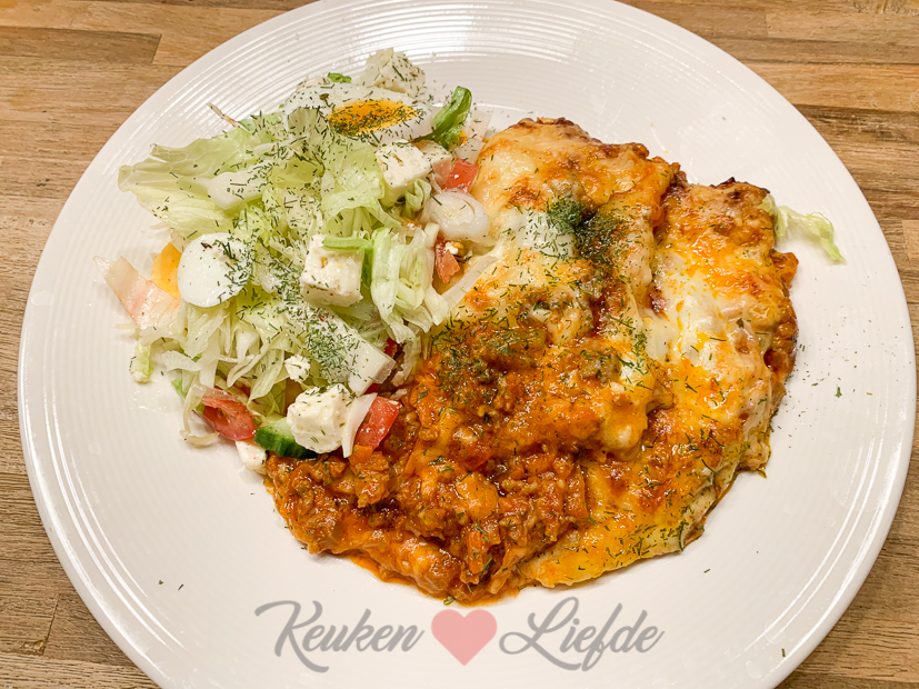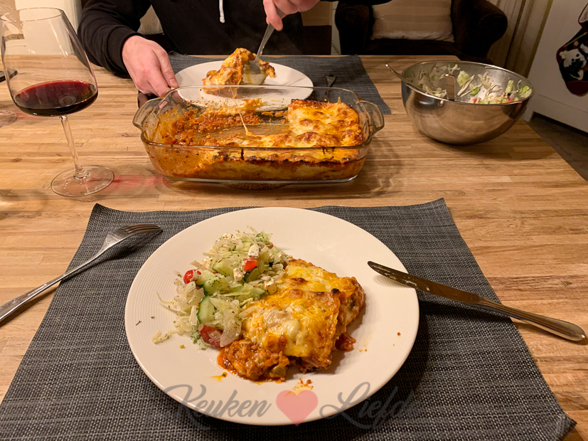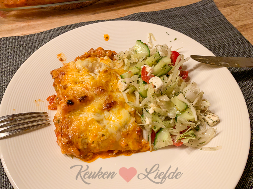 ’s Avonds eten we lasagne met een salade. Dit recept maak ik altijd. Ik maakte een kleine schaal zodat ik morgen nog een schaal kan maken.