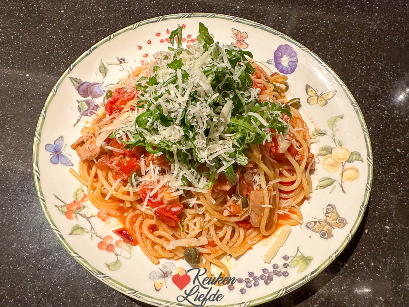 Vandaag is weer een gewone schooldag voor de tiener en een gewone werkdag voor mij en Johan. Johan is de deur uit en ik vermaak me thuis. Ik krijg ’s middags lekkere foodpost binnen van Looye met Honing tomaten en Joyn tomaten. Heerlijke, zoete tomaten met een volle smaak. Ik besluit maar meteen om een deel van de tomaten te gebruiken voor het avondeten en maakte een lekkere tomatensaus met tonijn en serveerde die met spaghetti. Veel makkelijker, lekkerder en goedkoper word je avondeten niet hoor. Ik gebruikte dit recept alleen verving ik het blik tomaten door veel verse tomaten in blokjes gesneden. Zo lekker!