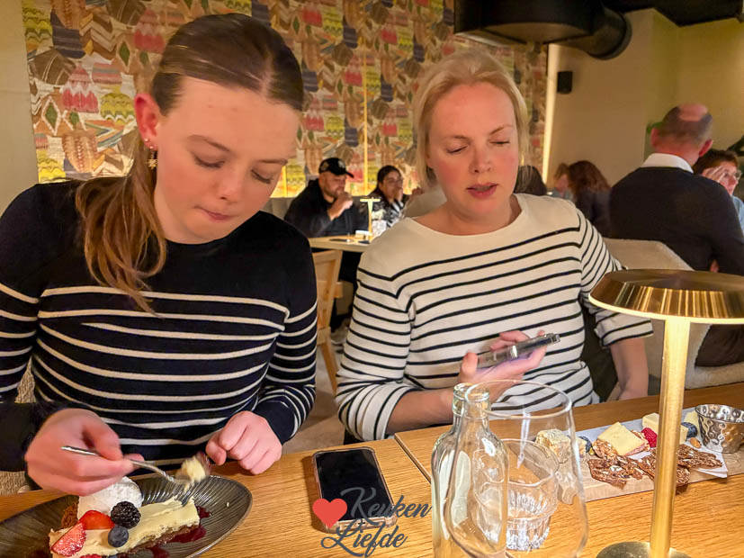 - Kaasplankje voor mij als toetje, de tiener ging voor cheesecake