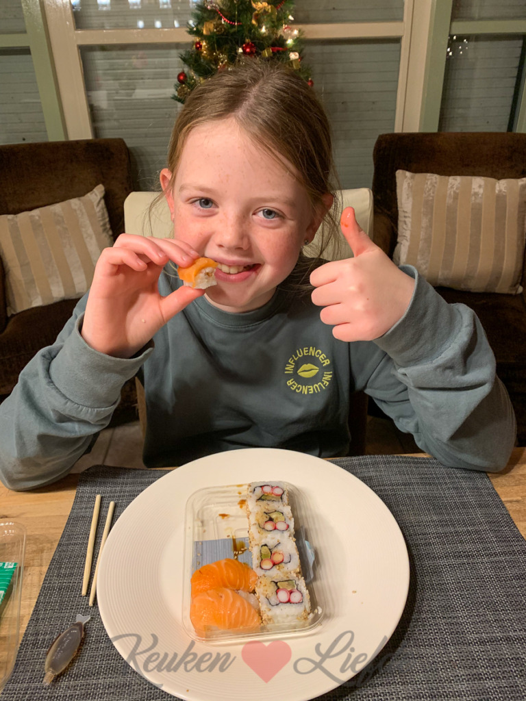 Een doodgewone dinsdag waarop ik een dagje op kantoor zit, Johan buiten de deur afspraken heeft en Ella-Marie naar school gaat. ’s Avonds eten we makkelijk. Sushi voor de kleine mini, pizza voor de oudjes.