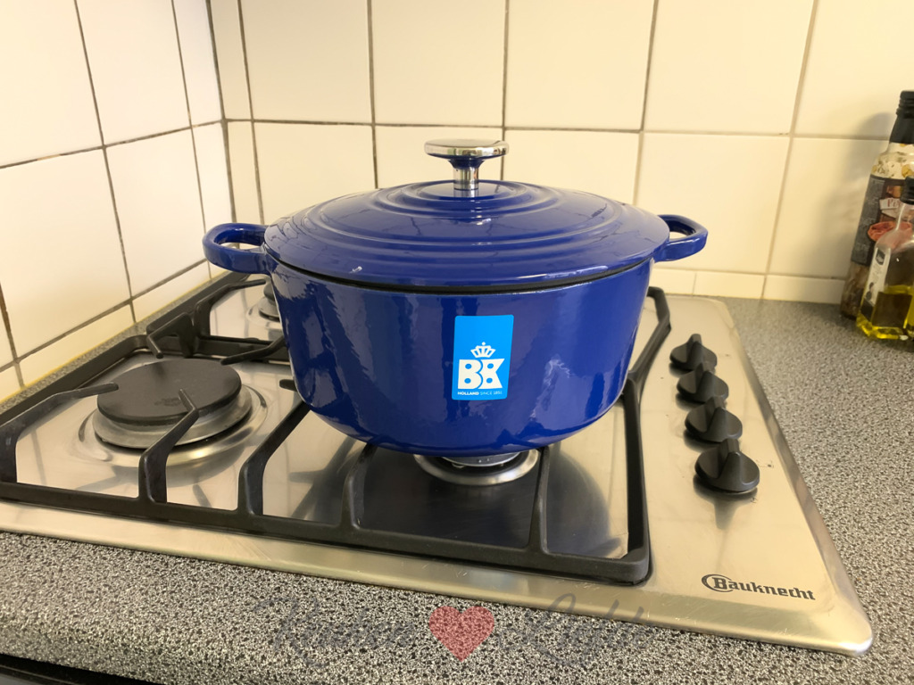 Net als het stoofvlees in de slowcooker zit gaat de deurbel en krijg ik deze prachtige gietijzeren Bourgogne pan van BK!