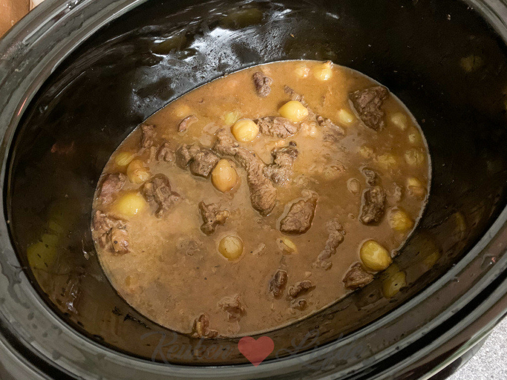 Johan en ik hebben zin in stoofvlees, dus halen we de slowcooker weer van stal. Ik maak het Belgisch stoofvlees (onze favoriet) van de website en voeg nog extra Amsterdamse uitjes toe omdat Johan dat lekker vindt.