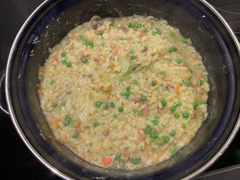 - Risotto met bloemkool, broccoli, wortel en doperwten.