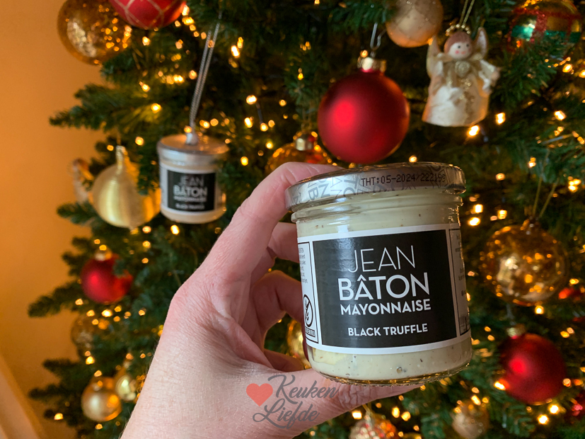 - Leuke foodpost van JEANBÂTON. Een potje truffelmayonaise en een kerstboomhanger uitvoering ervan.