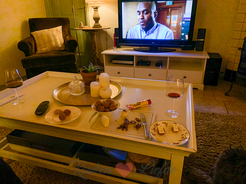 ’s Avonds toen Ella-Marie op bed lag installeerden Johan en ik ons op de bank met een klein borrelplankje en de Netflixserie: ‘The Stranger’. Goede serie!