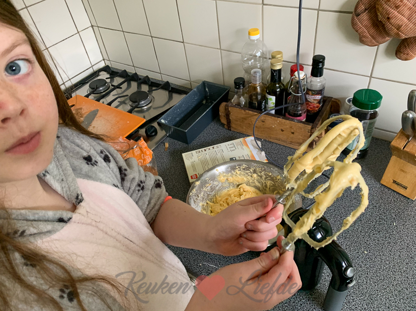 Ik werk vandaag grotendeels op kantoor om de gemaakte recepten van afgelopen verder uit te werken en de foto’s uit te zoeken en te bewerken. Ella gaat de keuken in om een stroopwafelcake te bakken. Zo fijn dat ze dat tegenwoordig helemaal zelf kan! De cake was goed gelukt, alleen jammer dat er een sterke vanillepuddingsmaak aan het cakebeslag zit. Waarom?! Volgende keer toch maar weer gewoon het KL-recept gebruiken (ahum, zal binnenkort wel even nieuwe foto’s maken ?).