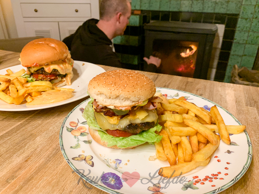 ’s Avonds eten we het ultieme broodje hamburger! Was lang geleden. 🙂
