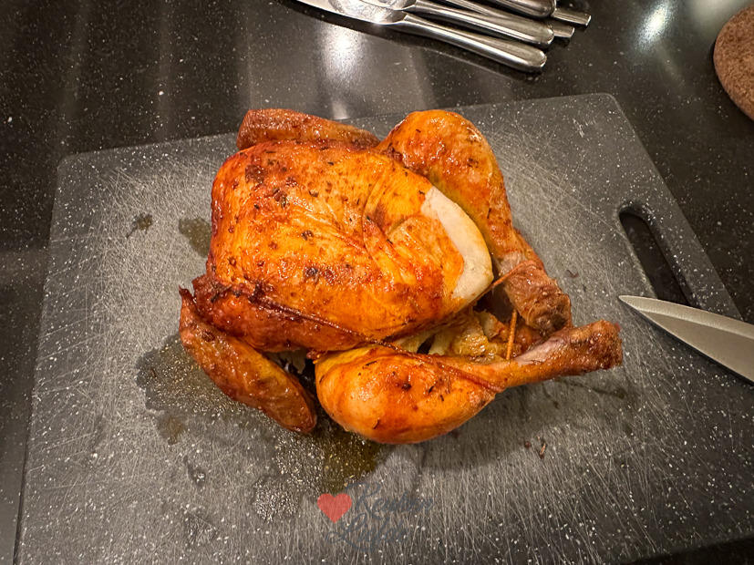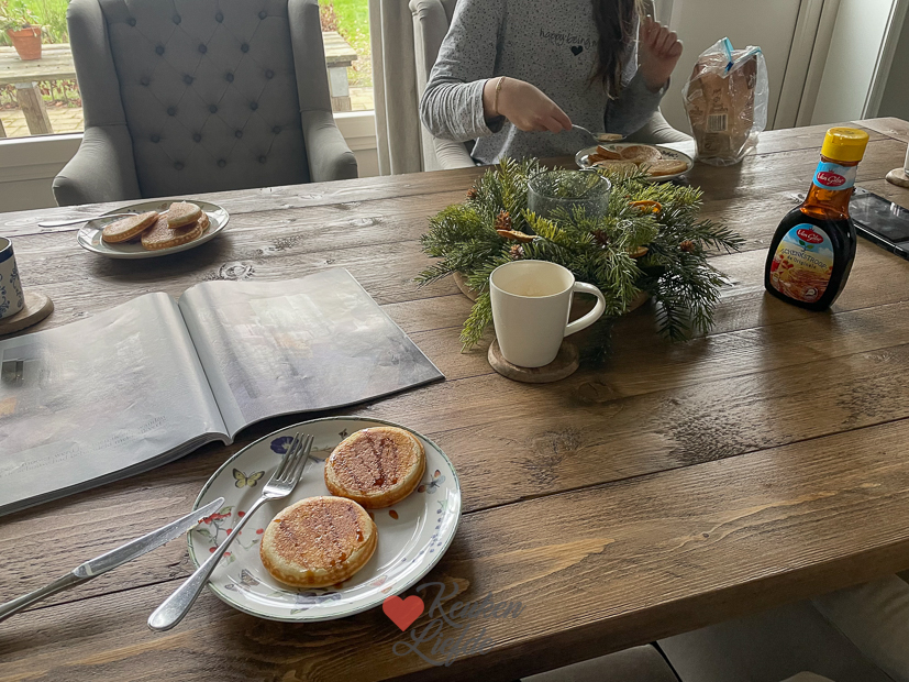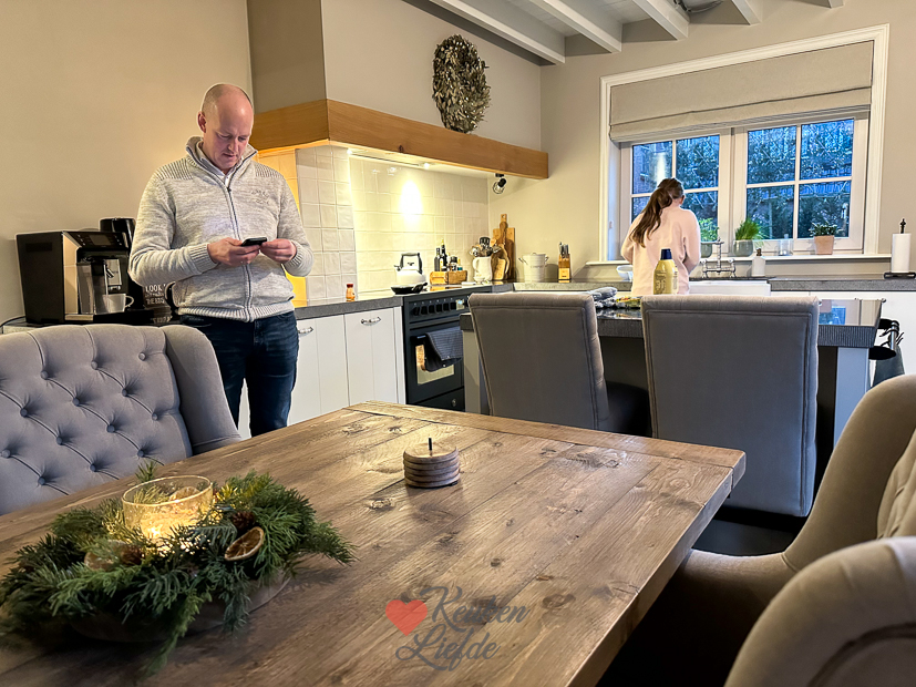 We ontbijten met pancakes en daarna stappen we met Nacho in de auto om een lekkere boswandeling te maken. Als we eind van de middag weer thuis zijn wordt er een pot thee gezet en gaat Ella huiswerk maken. Johan en ik gaan samen in de keuken zitten en bereiden het avondeten voor. Op het menu staat een hele kip van het ovenspit en een grote braadslede gevuld met aardappel en groenten die we onder de kip in de oven schuiven. Was heerlijk! Een geweldige uitvinding zo’n ovenspit.