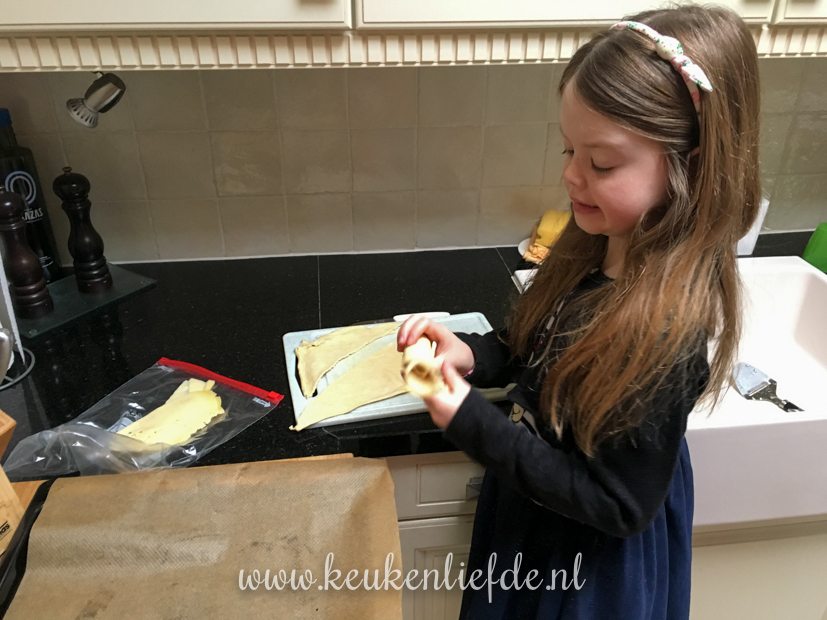 Als we zijn uitgeslapen maakt Ella-Marie croissants met kaas.