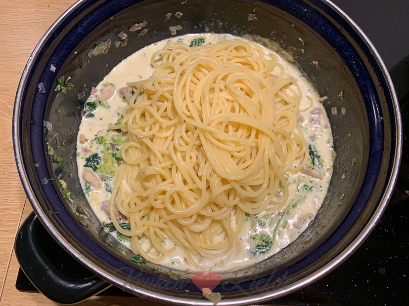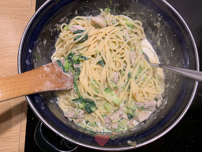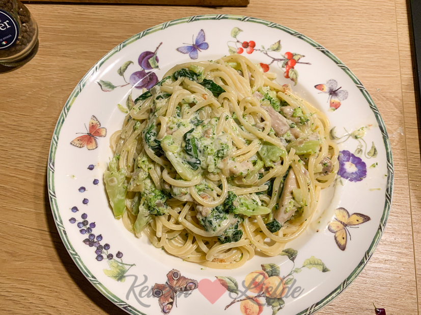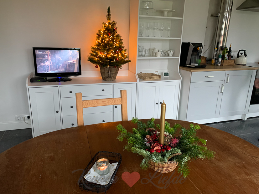 Ella is weer naar school en Johan en ik zijn thuis. Johan is vrij vandaag en helpt me in de keuken want zoals ik al zei, vandaag heb ik de laatste kookdag van het jaar. Hierna probeer ik zoveel mogelijk recepten voor de kerstvakantie uit te werken en in te plannen zodat ik straks ook lekker vakantie kan vieren. Ik maak vandaag recepten uit verschillende kookboeken waaronder een champagnetulband met witte chocoladeglazuur uit het Feestdagen Bakboek van Laura. Omdat dit een kerstrecept is ga ik deze binnenkort nog met je ga delen. De andere recepten komen pas in januari online. Eind van de ochtend komen mijn ouders even langs om twee mooie kerststukjes te brengen die mijn moeder gemaakt heeft. Dat doet ze elk jaar en ik ben er heel blij mee want mijn moeder kan dat. De recepten die ik zojuist gemaakt en gefotografeerd heb kunnen meteen bij de koffie geserveerd worden. Als Ella ’s middags uit school komt pakt ze meteen een logeertas in, ze gaat namelijk een nachtje logeren bij een vriendinnetje. Johan en ik eten ’s avonds een pastaatje met kippendij, broccoli en gorgonzola-roomsaus. Een recept dat ik vandaag maakte uit het kookboek Lekker Makkelijk van Pauline en Annika en erg in de smaak viel. De portie die ik overdag had gemaakt was te klein voor Johan en mij als avondeten, dus maak ik het recept ’s avonds nog een keer maar dan een iets grotere portie. Ik voeg er nog extra spinazie aan toe omdat die nog in de koelkast ligt en op moet.