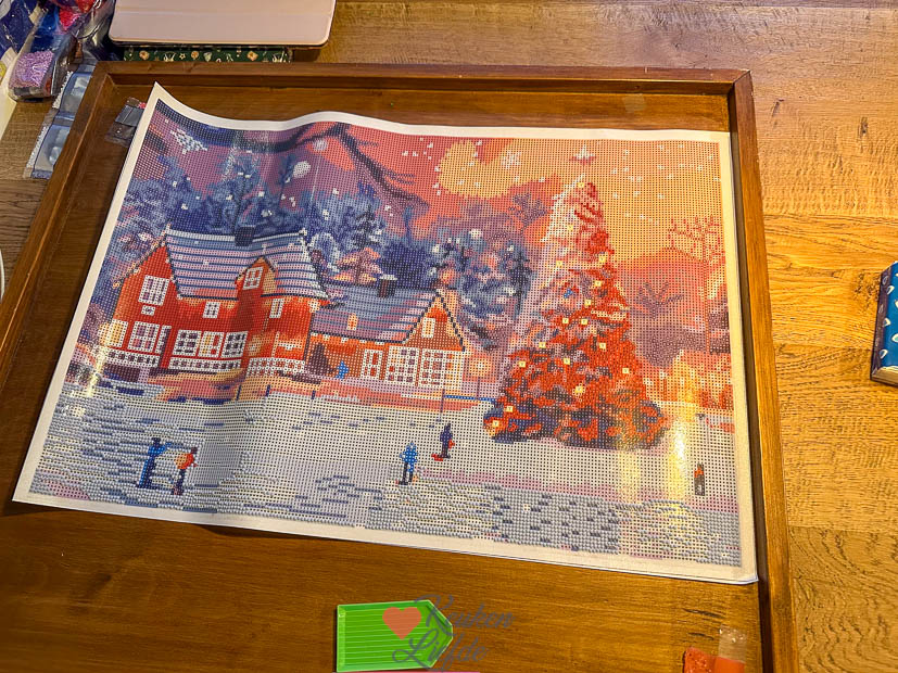 De diamond painting schiet nog totaal niet op (hij is ook veel groter dan degene die we vorig jaar hadden) dus tussen de bedrijven door leg ik wat steentjes. Begin van de middag, net als ik nog een kerstrecept wil gaan maken, belt dochterlief op dat ze op school staat met een lekke achterband en of ik haar even op kan halen. En zo worden de plannen weer gewijzigd. De fietsenwinkel vlakbij haar school zit dicht vandaag dus we kunnen de fiets pas morgen laten maken en waarschijnlijk woensdag weer ophalen. 🙄 Voor het avondeten maak ik risotto waar ik alle kliekjes groenten in gooi die ik tegenkom in de koelkast. Dat ruimt lekker op. En hij was heerlijk.