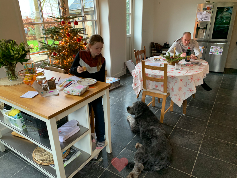 Vandaag staat alles in het teken van de voorbereidingen voor kerst. Er worden nog wat laatste kerstboodschappen in huis gehaald en er wordt alvast kippenragout gemaakt voor de kerstbrunch morgen. Als dat klaar is kleden we ons om en maken we de jaarlijkse kerstfoto bij de kerstboom. Daarna rijden we naar mijn ouders om daar kerstavond te vieren.