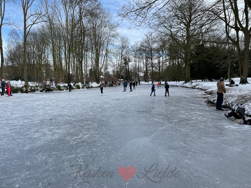 Vandaag gaan we schaatsen in Tiel met Johan zijn ouders in het park vlakbij hun huis.