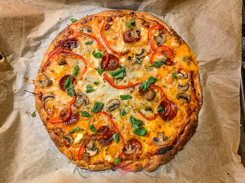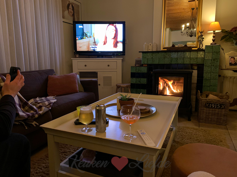 Voor het avondeten haalden we twee bolletjes pizzadeeg uit de diepvries. Alle ingrediënten om de pizza’s te beleggen zijn in huis dus we hoeven de deur niet meer uit om boodschappen te doen. We kijken ’s avonds Familie Gillis: Massa is Kassa met een een bord pizza op onze schoot. 🙂