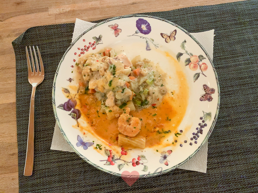 Ons avondeten is een ratjetoe van opgewarmde gerechten die ik eerder vandaag maakte. Ziet er niet uit maar was erg lekker. 🙂