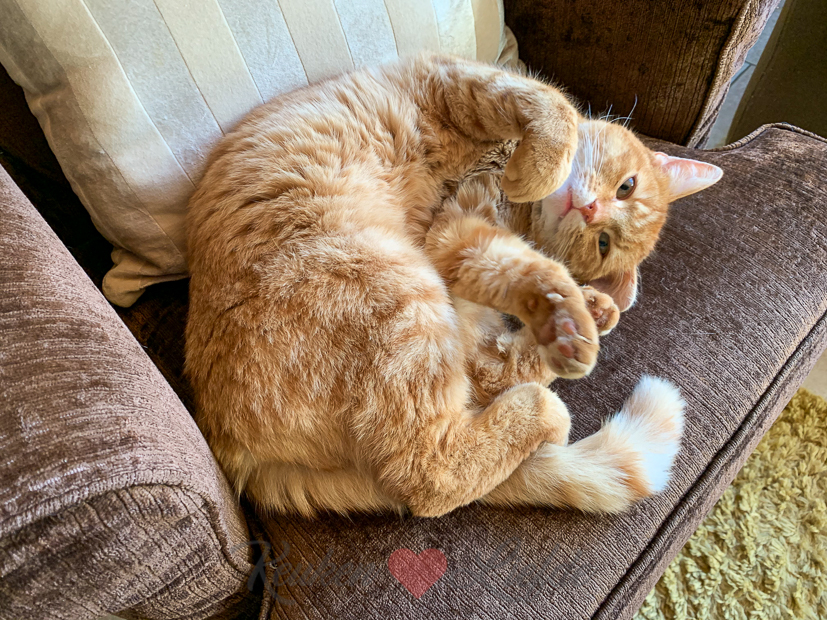 De katten houden helemaal niet van al die kou en sneeuw en zijn niet naar buiten te krijgen! Ze liggen de hele dag een beetje op de bank en stoelen te stinken…