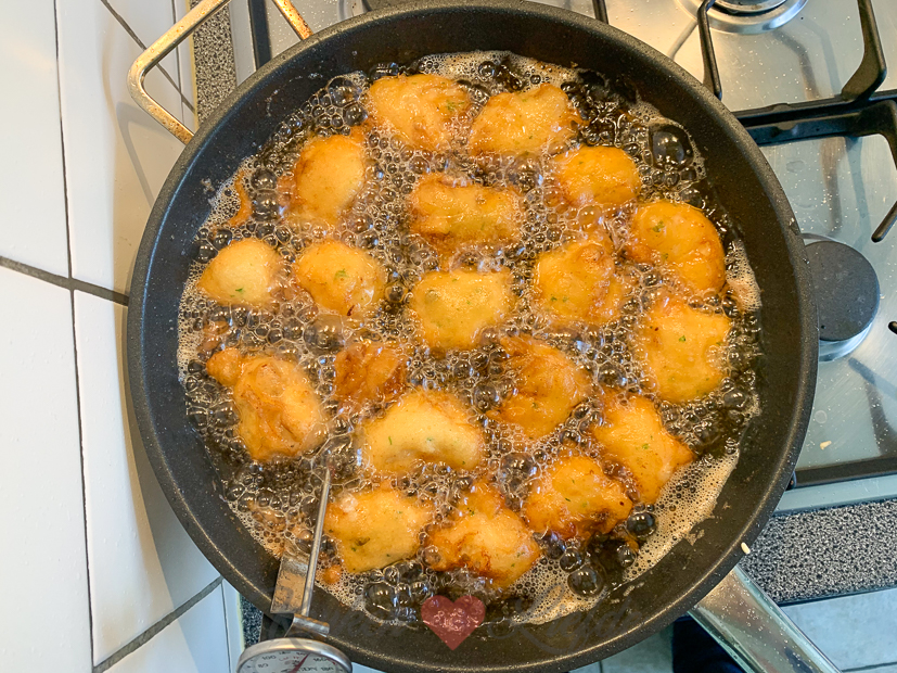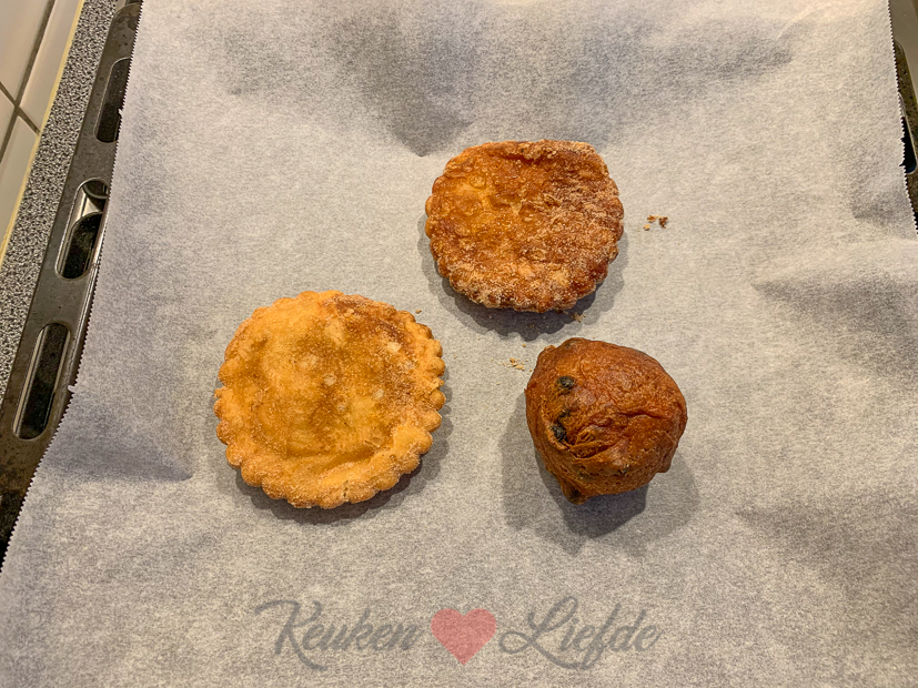 Bij de koffie warmen we twee appelbeignets en een oliebol op die ik had besteld bij de scouting om geld in te zamelen.