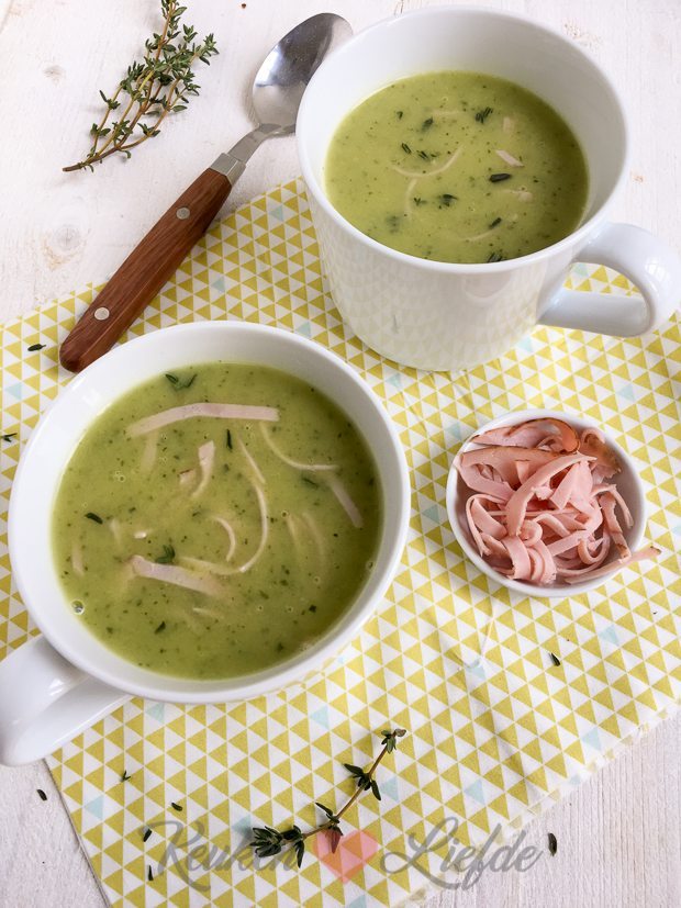 Ondertussen maak ik twee recepten voor op KeukenLiefde: pikante hummus met gepofte rode peper en courgettesoep met ham. Ze zijn tevens mijn lunch. Ook niet verkeerd toch! 🙂