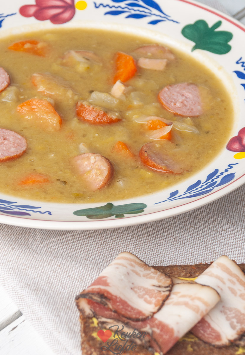 De soep is uitermate goed gelukt, ik heb alleen ook , (buiten jou recept) verse worst zachtjens mee laten koken, en ’n handjevol soepvlees, krijg je toch ’n echt volle smaak van de Erwtensoep!