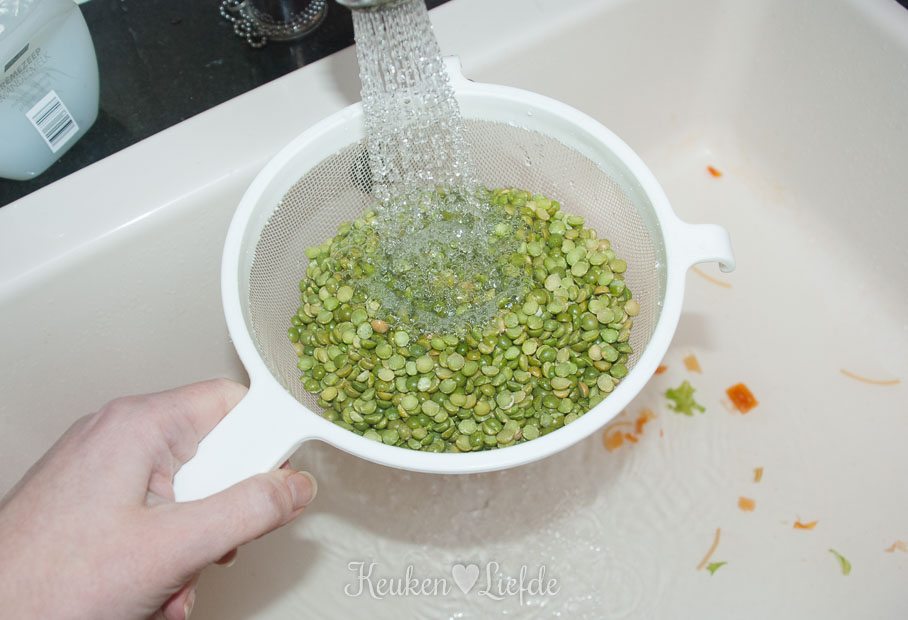 Ik hou van erwtensoep, maar meer van de dunne variant, zal ik maar zeggen. Erwtensoep waar je lepel in blijft staan vind ik verschrikkelijk. De laatste keer dat ik het gemaakt heb heb ik beduidend minder spliterwten gebruikt, maar desondanks was het toch weer een dikke brij geworden. Nu zit ik te piekeren om maar 1/3 spliterwten te gebruiken en 2/3 doperwten uit de diepvries. Zou dat een oplossing kunnen zijn?