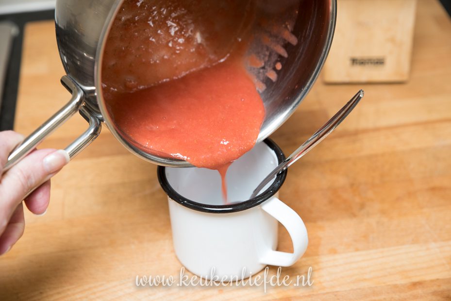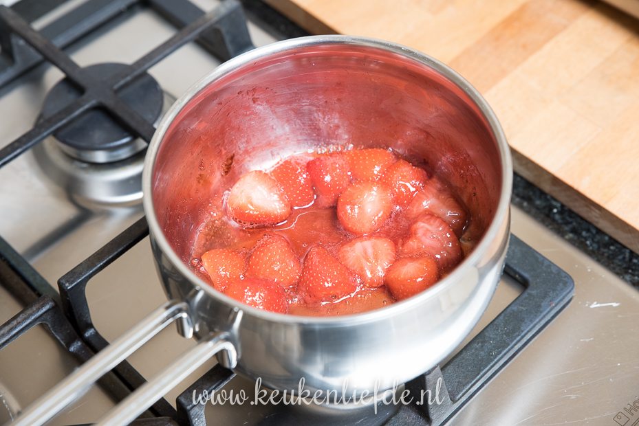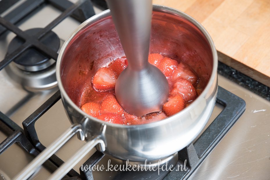 Maak de aardbeiensaus (dit kan al een dag van tevoren)