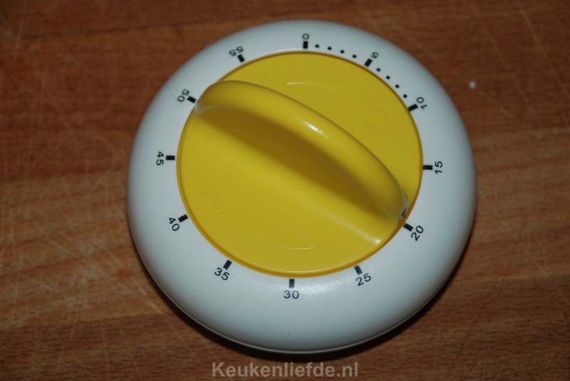 Zet ook het volgende klaar: 1 grote kom, 1 mixer met beslag haken, 2 eetlepels of een ijsscheplepel, 1 houten prikker, 1 (afkoel)rooster.
