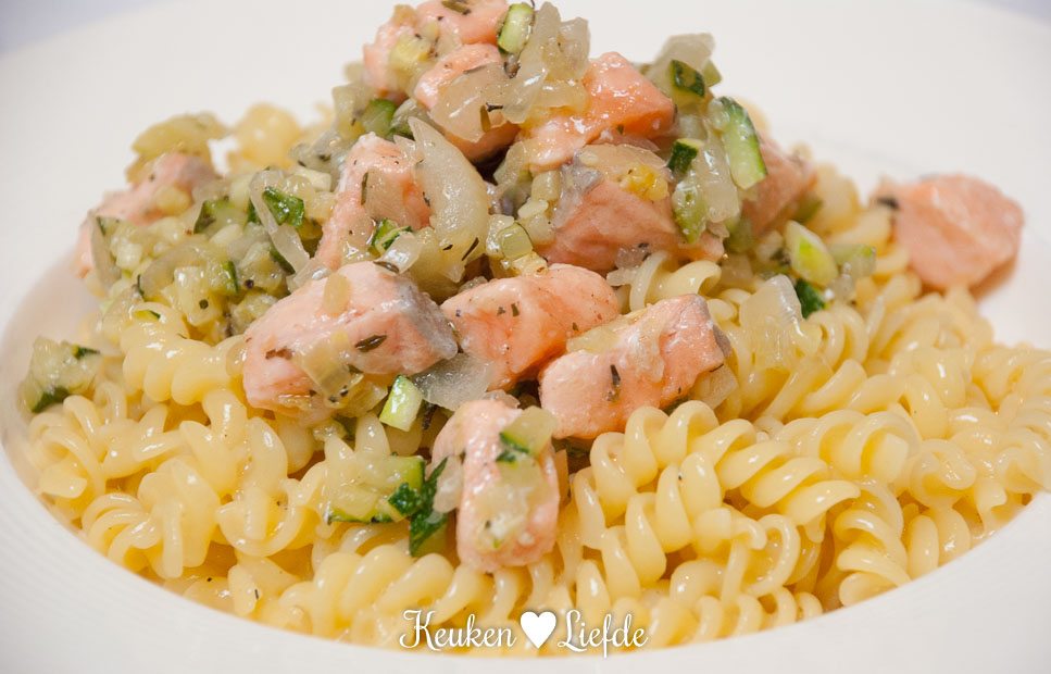 Fusilli carbonara met zalm-courgettesaus