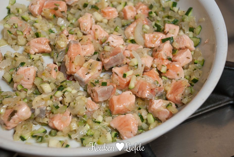 - 200 g verse zalmfilet, in blokjes gesneden