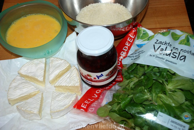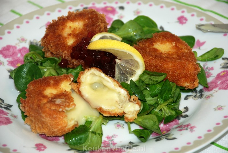 Gebakken camembert met preiselbeeren
