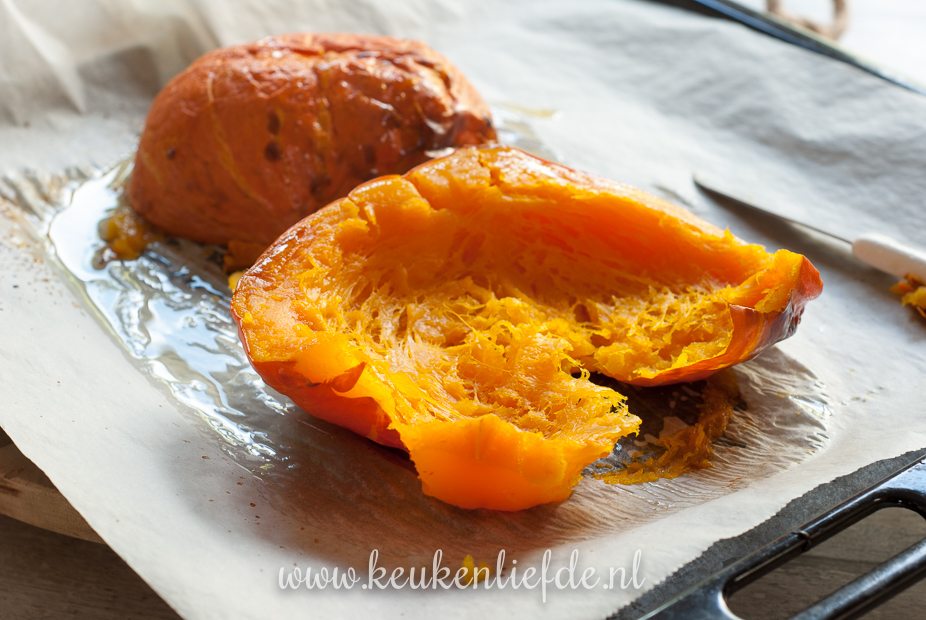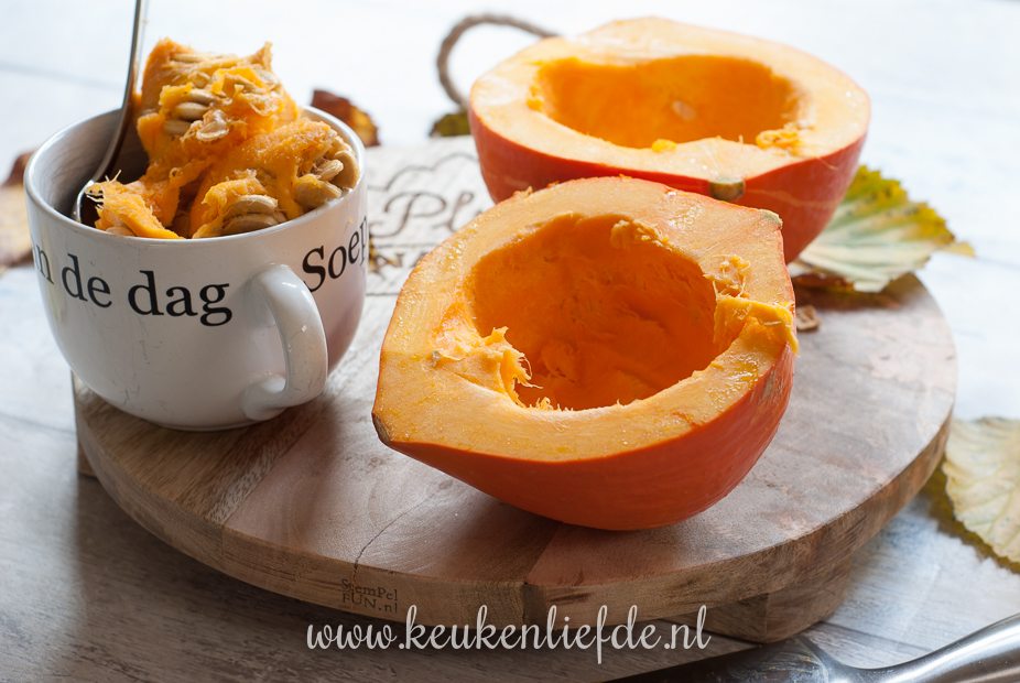 Het makkelijkste is om een pompoensoort te nemen die je niet hoeft te schillen zoals een bio pompoen, of een Hokkaido.