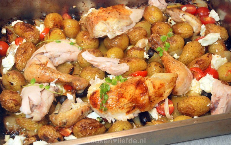 ‘Ja hoor, daar is -ie weer’, hoor ik jullie denken. Tsja… What can i say; ik ben nu eenmaal dol op kip uit de oven en dan vooral op een hele kip. Zo simpel. Zo makkelijk. Zo Lekker. I love it! Dit keer geef ik de kip een heerlijke Griekse twist door citroen, oregano, tomaat en feta toe te voegen. Zo maak je op heel eenvoudige wijze deze verrukkelijk Griekse ovenkip!