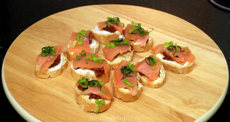 Hapje met zongedroogde tomaat en gerookte zalm