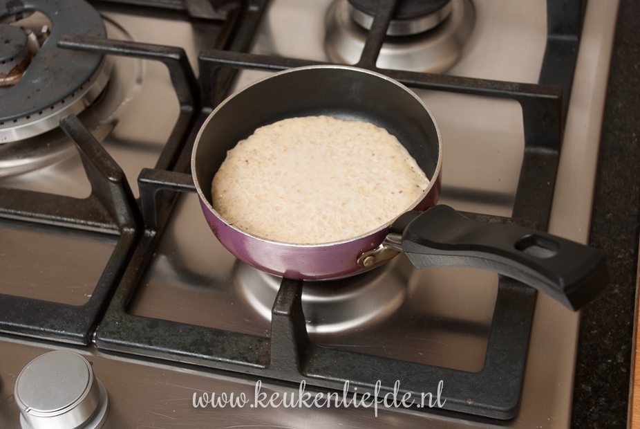 Verhit een koekenpan met een beetje olie of boter en laat warm worden.
