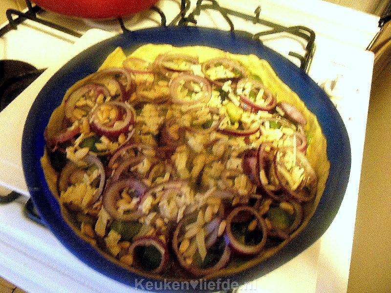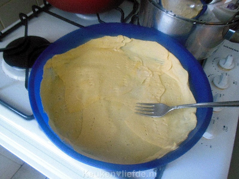 Bak de quiche in circa 40 minuten in het midden van een voorverwarmde oven van 200 graden.