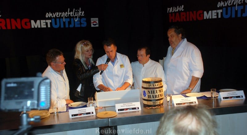 Manuëla laat de eerste haringen uit het vaatje direct beoordelen door een vakkundige jury: chefs Julius Jaspers en Alain Caron, bekend van onder meer het tv-programma Masterchef.