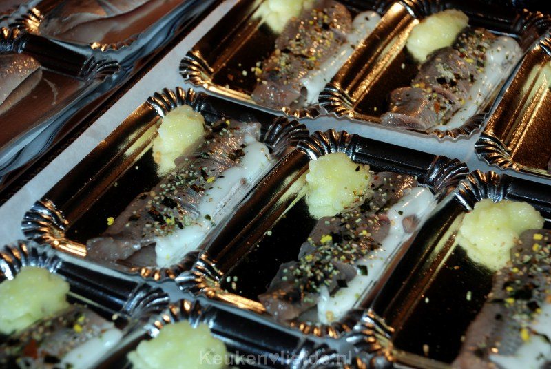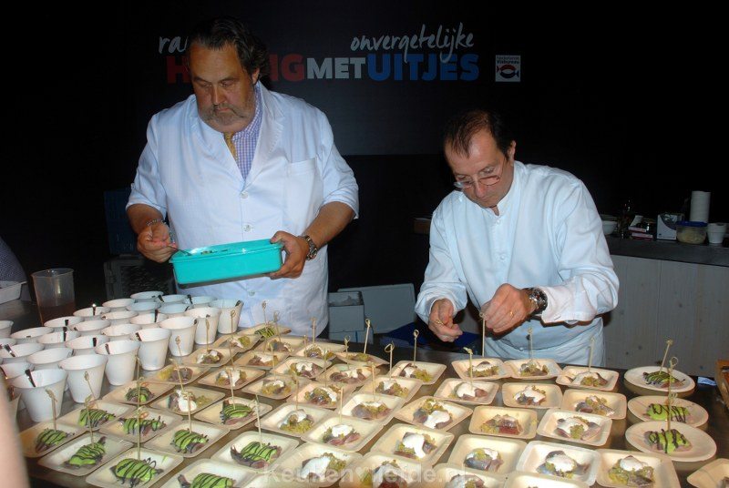 Enthousiast gaan de chefs aan de slag om iedereen te voorzien van de meest heerlijke haringhapjes.
