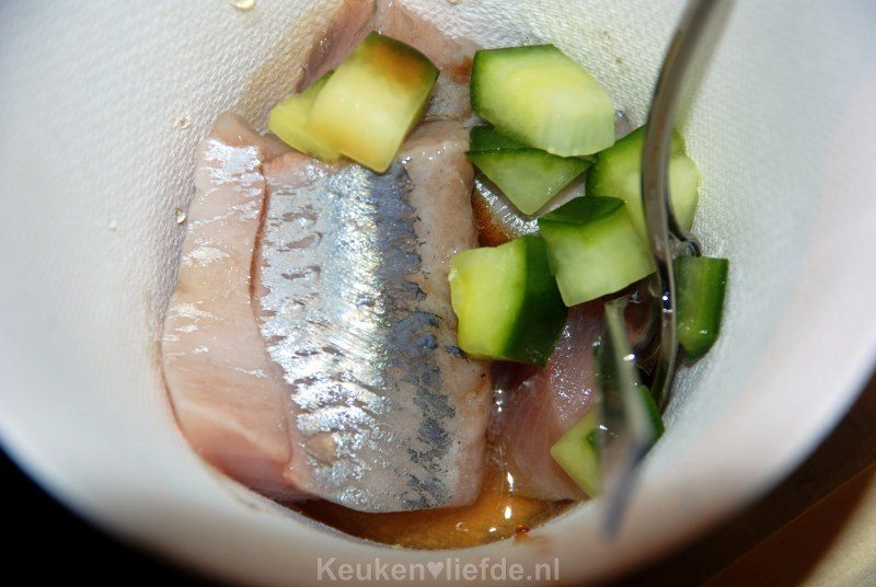 Ook Erica Terpstra smulde ervan. En ik? Wel, na het eerste voorzichtige hapje volgden er snel meer. Vooral de haring met furikake en gel van augurk waren bij Johan en mij favoriet! Ik ben genezen.