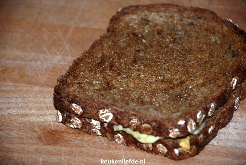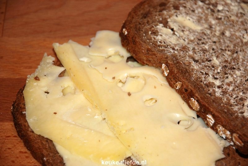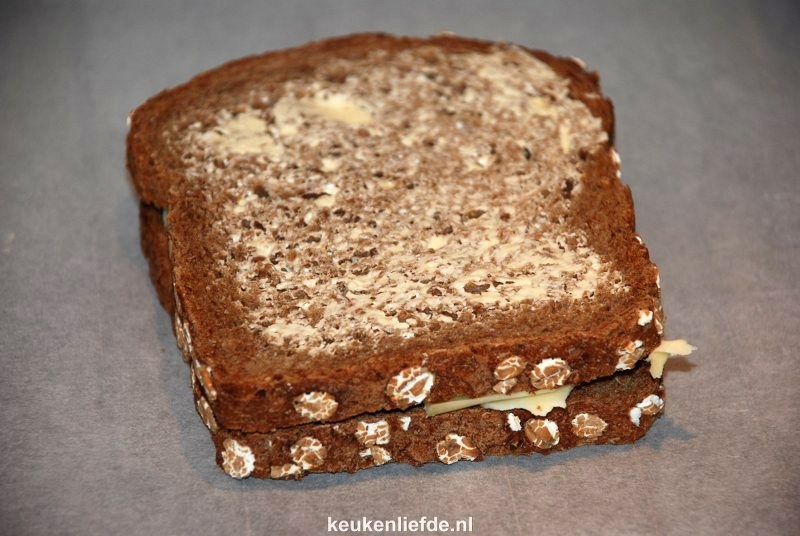 Leg de kaas op de broodkant zonder boter en dek af met de andere boterham.