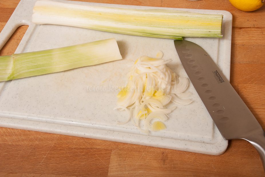 - 1 bosui, alleen het witte gedeelte (bij gebrek aan bosui in onze supermarkt gebruikte ik prei)
