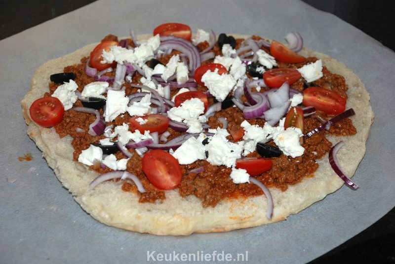 Dit is mijn lekkere en snelle Keukenliefde variant op de bekende Turkse pizza. Als bodem voor deze pizza gebruik je een doormidden gesneden Turks brood en deze beleg je vervolgens royaal met een pittig gekruid gehaktmengsel. Serveer de pizza met knoflooksaus. Yummm!!!