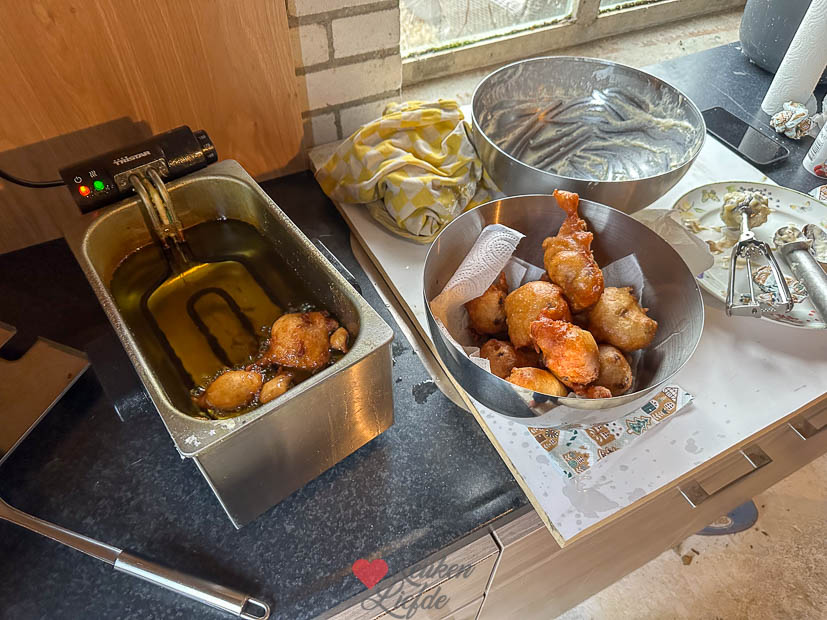 Oudjaarsdag was de eerste dag voor mij dat ik van de bank afkwam en me aankleedde. Ik voelde me zelfs goed genoeg om oliebollen te bakken en at er direct twee achter elkaar op vers uit het vet, bestrooid met een flinke berg poedersuiker. Effe een goede bodem leggen na dat bankliggen. Nou, dat smaakte hoor! En Johan maakte een heerlijk warm en koud buffet met o.a. beenham, zalm, kipsateetjes en gehaktballetjes van het ei voor ’s avonds. Ik heb nog nooit zoveel vuurpijlen de lucht in zien gaan, de ene nog mooier dan de ander. Er kwam geen eind aan! We kunnen zeker zeggen dat we knallend 2026 ingingen.